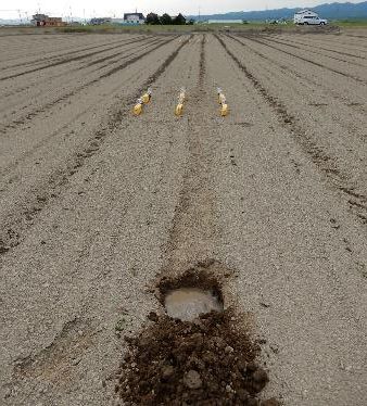 収穫後には、設置場所を復元し、水位計のデータを回収します。